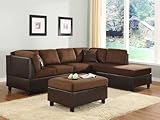 Comfort Living Reversible Homelegance Sectional Furniture Collection The casual design with plush cushions provides comfort and pleasing decor for your living room. The chaise lounge is not reversible, and the set includes a matching ottoman. This furniture is no wallflower. Bold details highlight this attractive two-tone sectional that features a right-facing sectional piece and left-facing chaise. An upholstery design featuring brown bella microfiber seats and dark brown bi-cast vinyl arms and back completes the look. Homelegance is an international manufacturer and importer of home furniture with a wide assortment of bedroom and dinning room furniture like the Comfort Living Reversible Sectional Living Room. Homelegance offers the highest quality, the best value, the newest design, and the most satisfying furniture experience for the price and category of merchandise offered. The Comfort Living Reversible Sectional Living Room can enhance your home. Wide selection of Dining Collections, Bedroom Collections, Occasional Collections, Sofas and Chairs, Entertainment and Home Office, Youth, Futons, and Daybeds, Accessories, Bombes, & Curios - everything you need to furnish your home, Comfort Living Reversible Sectional Living Room.