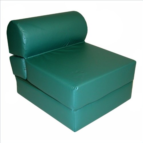 The lovely Elite Emerald Adult Foam Sleeper Chair brings a casual touch to your home. The convertibility of this seat provides a comfortable touch on the go. So for exercise, sleep or just relaxing the Emerald Sleeper Chair. Features: Chair has emerald color Vinyl upholstery Apartment sized Chair converts to mattress , exercise mat Chair is filled with fire resistant polyurethane foam Assembled in the U.S.A. Specifications: Weight: 13 lb Chair Dimensions: 25" H x 26" W x 32" D Sleeper Dimensions: 13" H x 26" W x 76" D