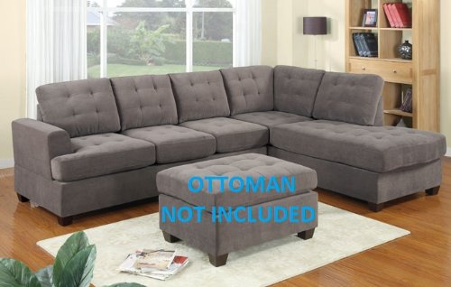 2 Pc Waffle Suede Sectional Sofa Set in Charcoal Finish Review