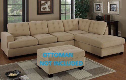 2 PC Waffle Suede Sectional Sofa Set in Khaki Finish Review