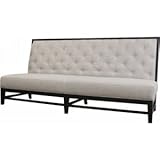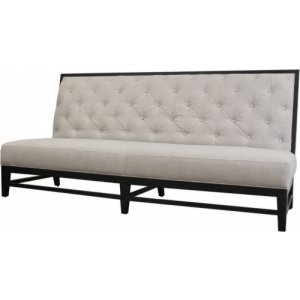 Drawing inspiration from the palatial luxuries of 1800s European royalty, the Bristol Sofa is a modern take on the rich furnishings of years past. Made of a solid wood frame with black finish, this armless sofa features light gray linen upholstery with foam padding and button tufting detail. Finishing off the piece are black wood legs with non-marking feet. A matching chair is also available as well as a bed with tufted and upholstered headboard (each sold separately). The sofa is fully assembled.